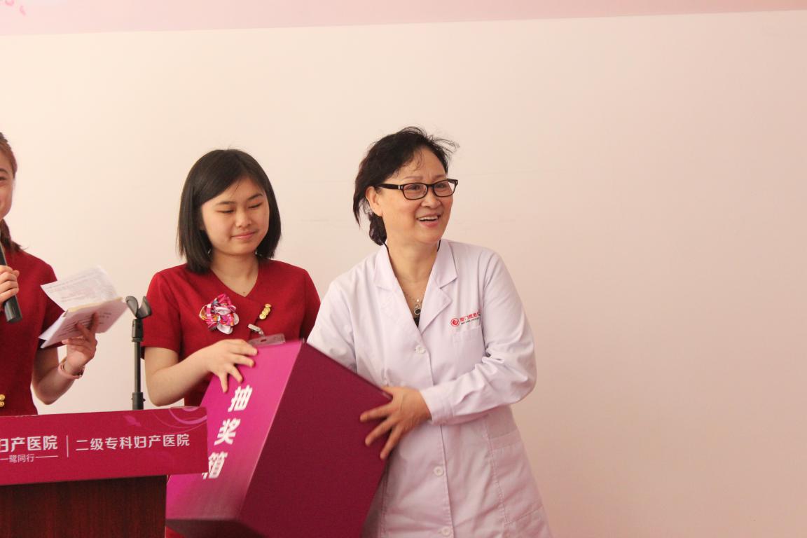 上图为:赵院长为准妈冯进行抽奖,揭晓中奖名单。